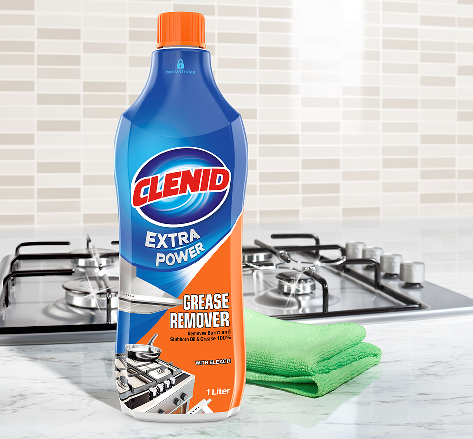 Apply Clenid Grease Remover directly onto stubborn oil and tenacious stains and wait until the deposits in the dirty area is soft. If the problem is a pot or pan that is burnt and stuck, pour Clenid Grease Remover onto the surface and wait at least 10 minutes. For kitchen cabinets and other kitchen surfaces, mix 100 ml (1 tea cup) Clenid Grease Remover to1 liter of water and use it. And wherever you use it, remember to rinse with plenty of water.