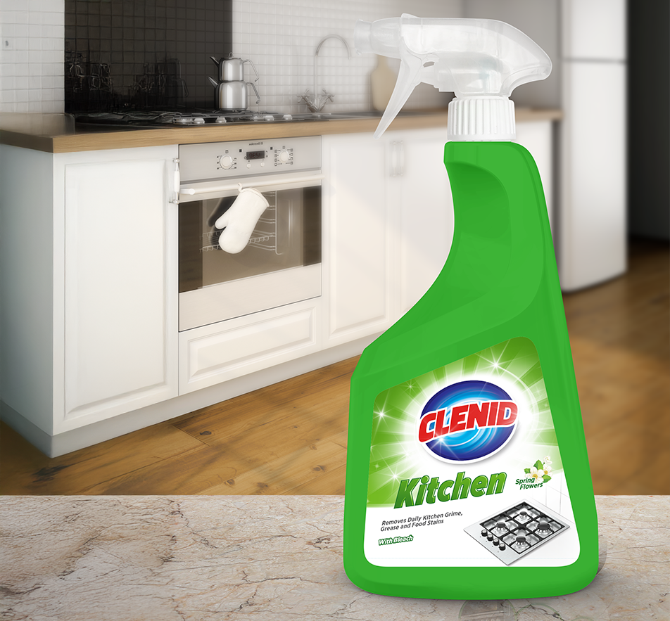 Press on the child lock on the top of the Clenid Kitchen Spray, and turn it "Stop" to "Spray" symbol (insert the symbol). To use the product in "Spray" mode, keep the smart lid before the spraying mechanism. For the "Foam" mode, just keep the smart lid closed. Use the Clenid Kitchen Spray on the dirty surface and wipe it with a damp cloth or a sponge. Then, rinse the surface with plenty of water. For persistent and difficult stains, leave the Clenid Kitchen Spray on the dirty surface for at least 2-3 minutes.