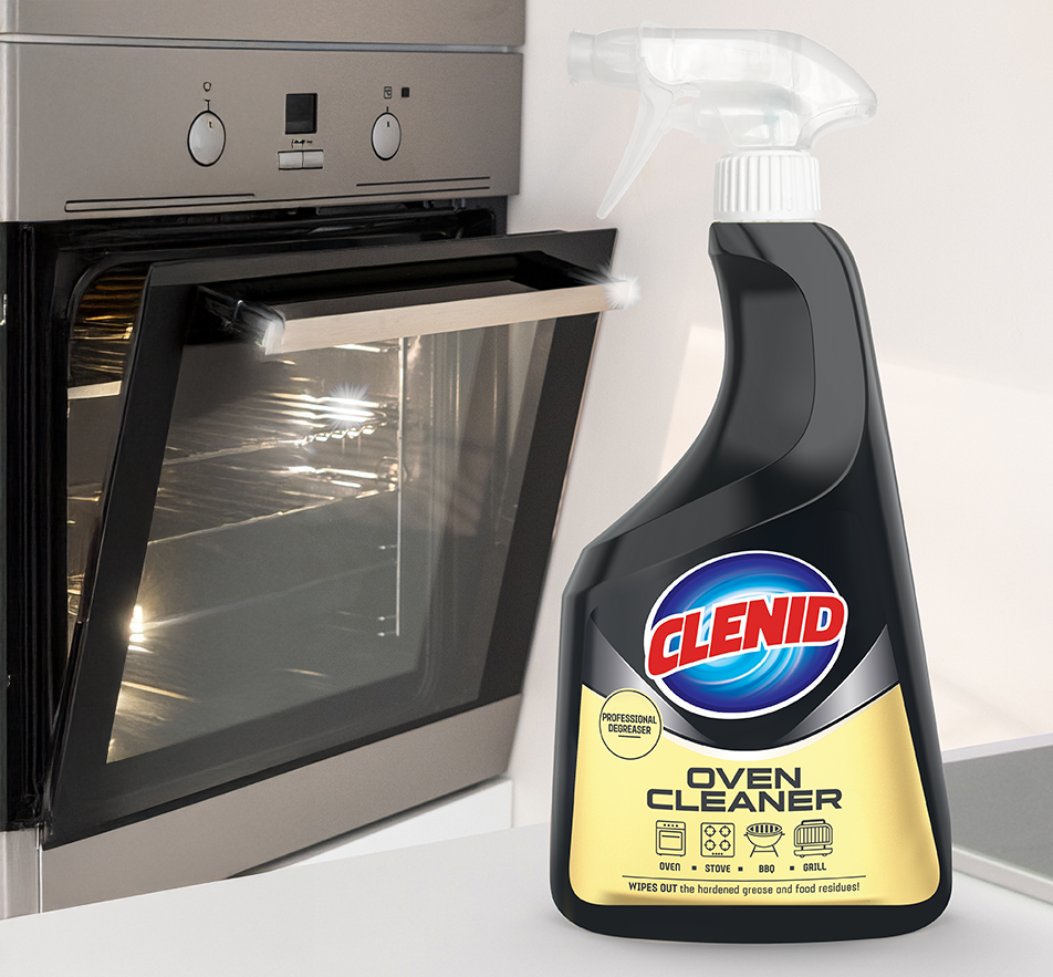 Stove: After the surface has cooled, apply Clenid Oven Cleaner to the oily areas, wait 1-2 minutes and then wipe with a damp cloth.